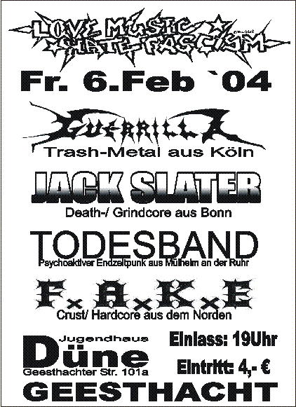 06.02.2004 | Geesthacht - Düne - mit Jack Slater, Guerilla und Todesband - Flyer - 8 Bilder - Love Music Hate Fascism Fest |