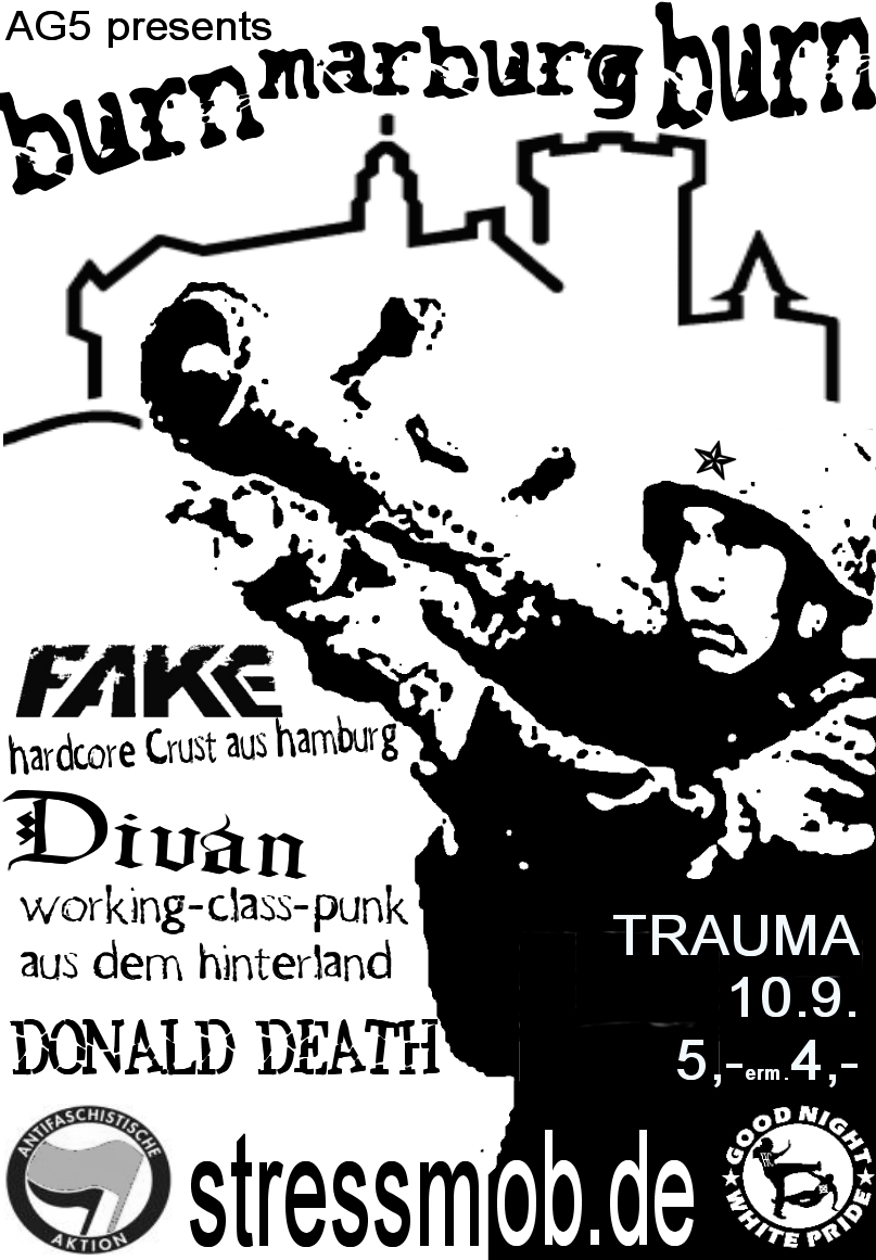 10.09.2005 | Marburg - Trauma - mit Divan, Donald Death und Marburg Rejects! Das ganze war ein Soli-Konzert für eine örtliche Antifa-Gruppe - Flyer |